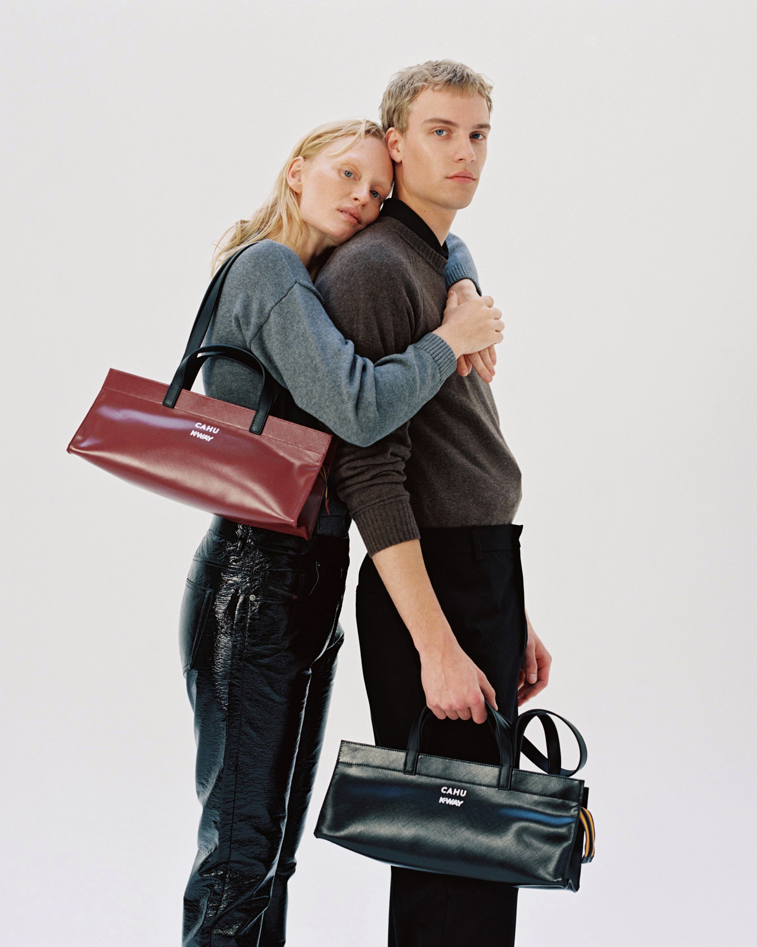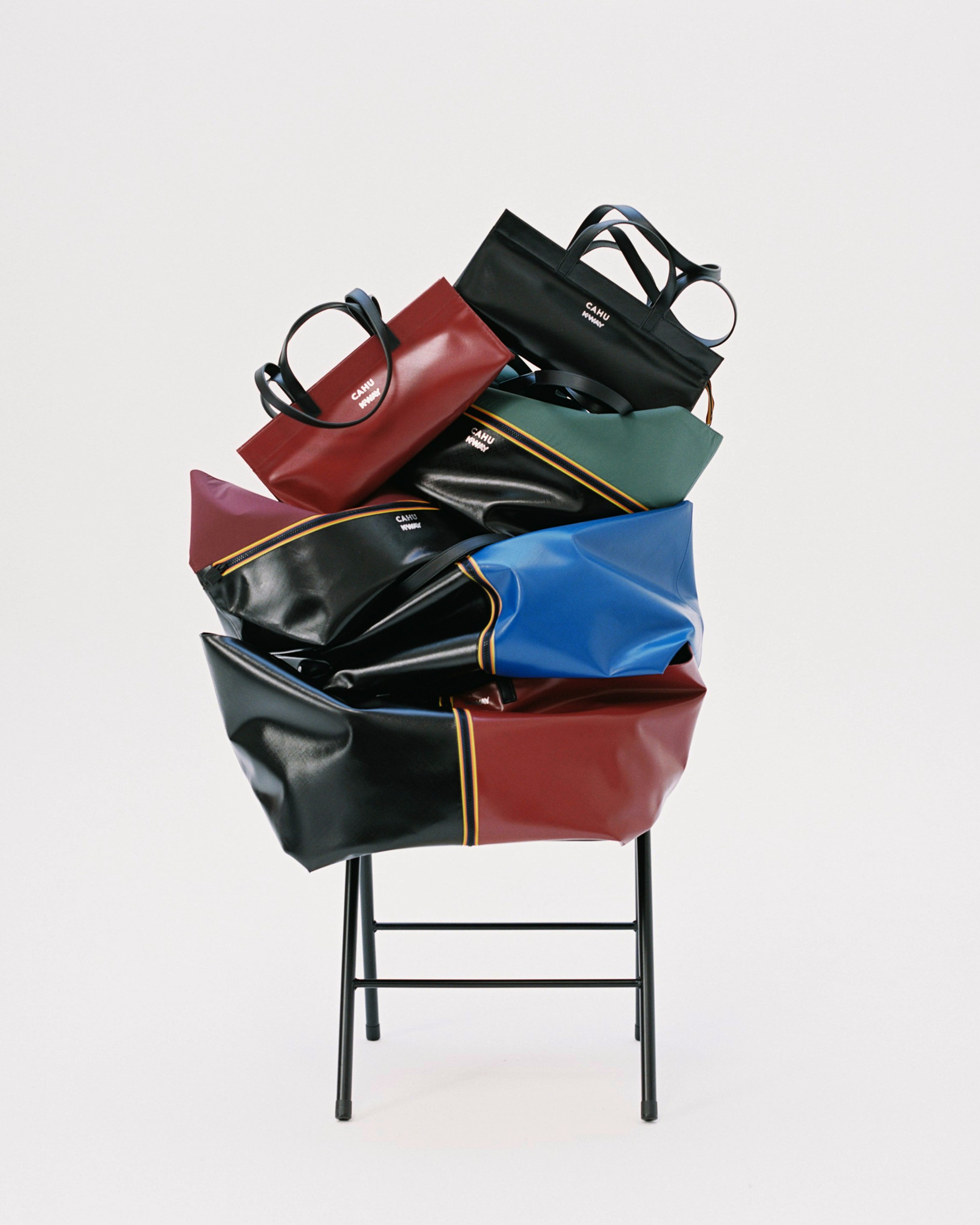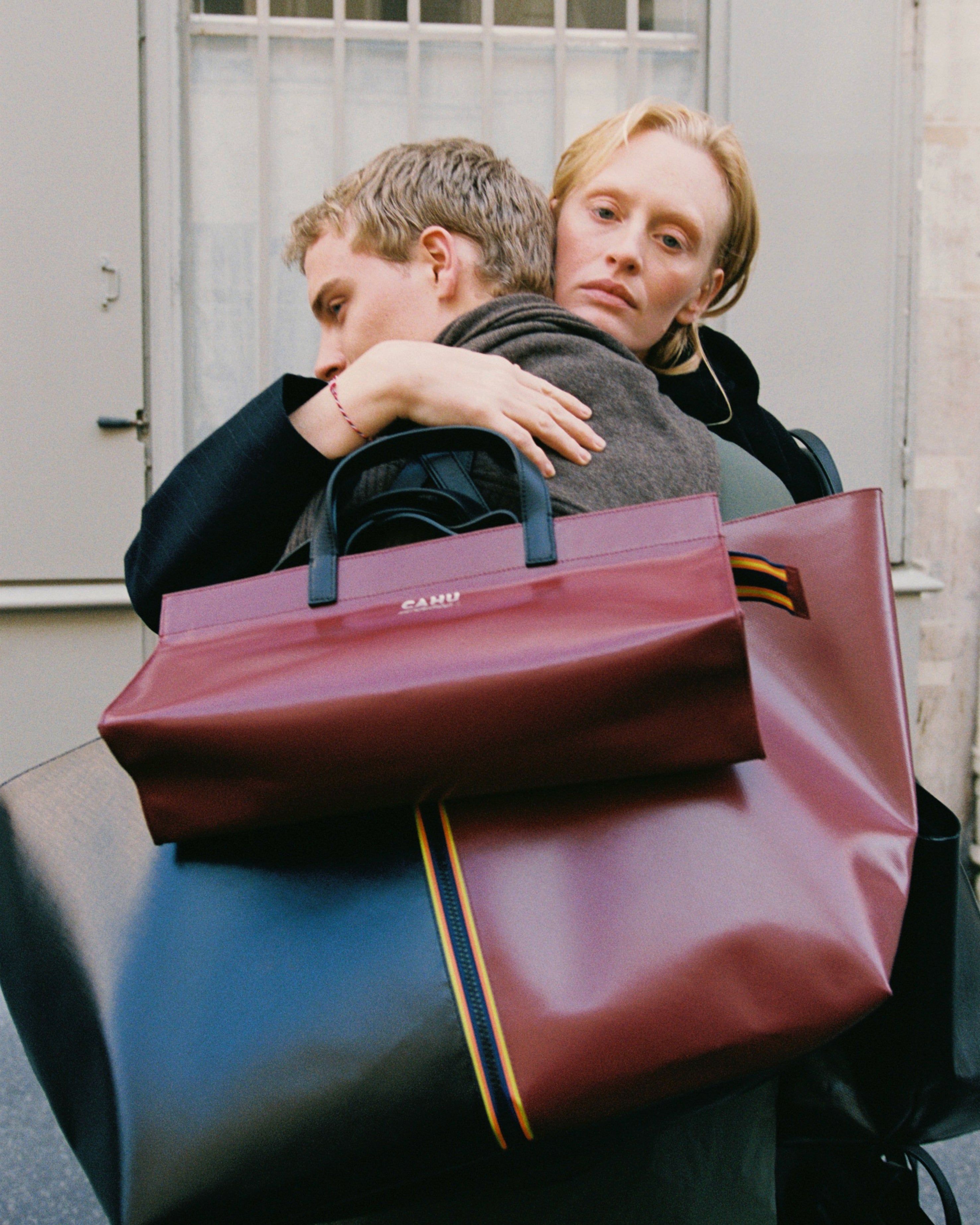 From compact crossbodies to spacious totes and weekenders, each bag combines CAHU’s structured PVC with K-Way’s lightweight nylon. The signature zip sits at the heart of every design, uniting materials and colors while offering a new level of modularity: playful, practical, and unmistakably iconic.