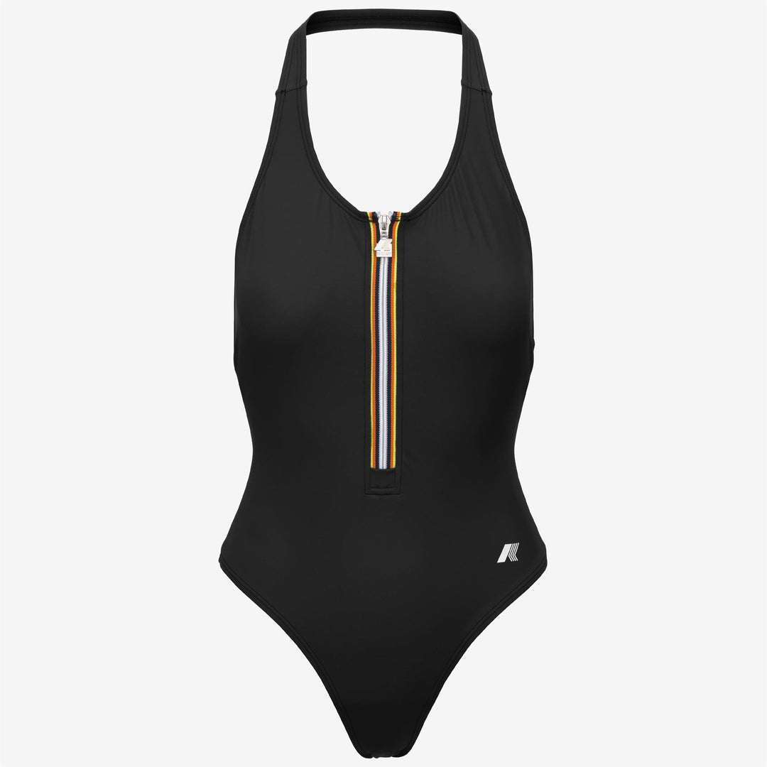 The Sylvie one-piece swimsuit boasts a feminine halterneck silhouette with a long front zip, embellished with K-Way's iconic striped tape. Crafted from resistant quick-dry Lycra®, the design is detailed with a coloured K-Way logo on the side.