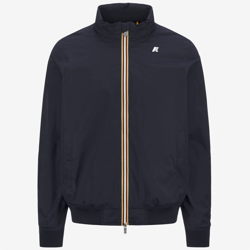 Amaury is a men's short jacket that merges a casual, urban look with K-Way's technical features. It is made from weather-proof stretch nylon and finished with a soft grey melange cotton jersey lining only on the front and back, which provides superior comfort, excellent protection and a comfortable feel on the skin. The interior is finished with meticulous attention to detail: there are heat-taped seams and the iconic multicoloured K-Way tape at the waist for a distinctive signature touch.