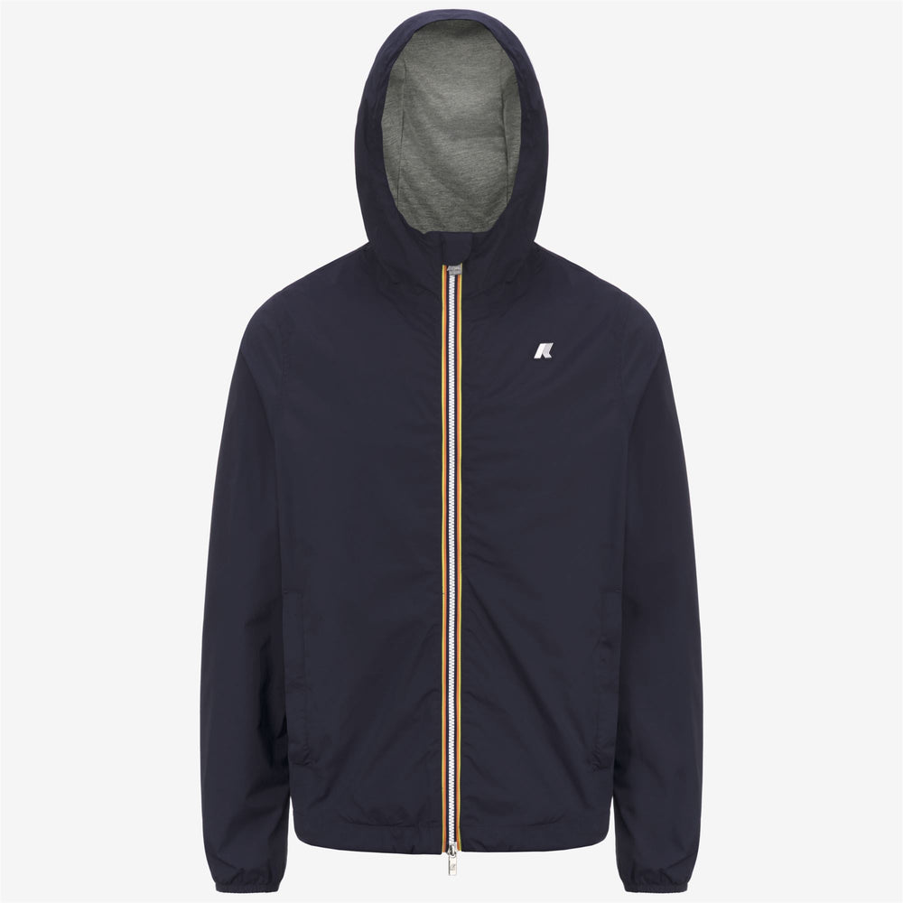 Jack is a men's slim-fit jacket, made from weather-resistant stretch nylon with soft grey melange cotton jersey lining on the front and back only, which provides superior comfort, excellent protection and a comfortable feel on the skin. The interior is finished with meticulous attention to detail: there are heat-taped seams and the iconic multicoloured K-Way tape at the waist for a distinctive signature touch.