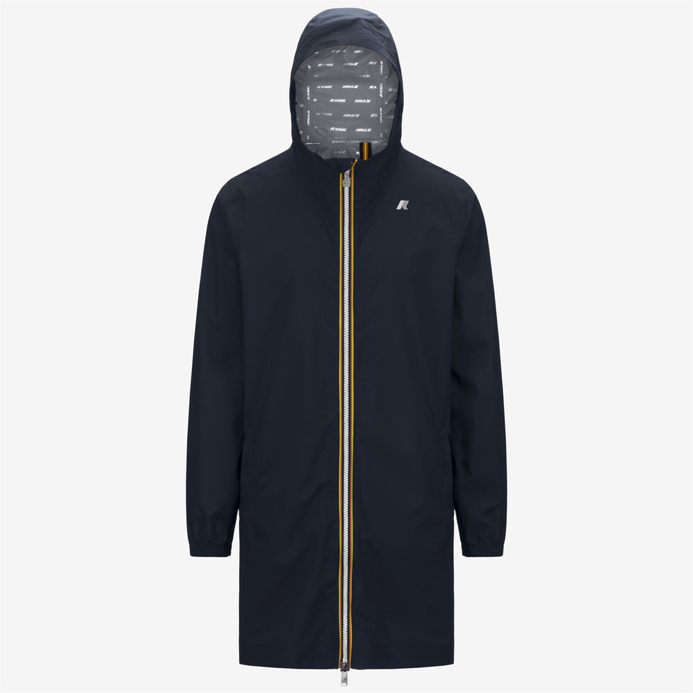 Thomas is a men's three-quarter length jacket with a contemporary straight-line design, perfect for transitional seasons. It's crafted from stretch technical fabric that allows for unrestricted movement while providing rain and wind protection, with water resistance up to 10000 mm. The interior is lined with an insulating membrane with all-over silver-tone K-Way lettering print. Functional details, such as zipped pockets, a wrap-around adjustable hood, and elasticated cuffs ensure an easy, comfortable fit.