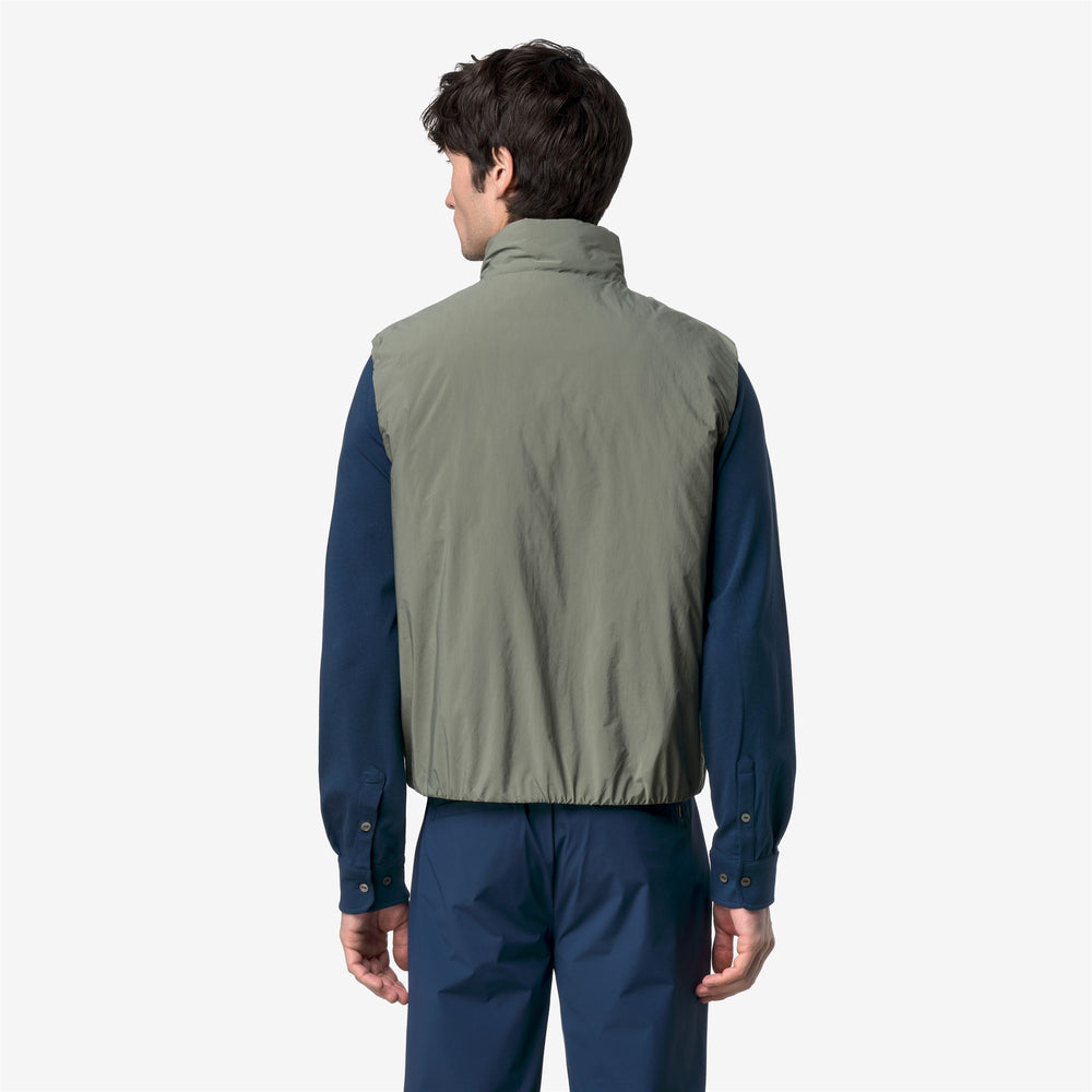 Valen is the men's vest that combines functional research with K-Way's commitment to respecting nature. Made from a soft fabric that protects against water and wind, smooth on the outside and quilted on the inside with a wavy pattern for a distinctive graphic effect. The innovative feature is the Primaloft® padding, a highly insulating fiber made from recycled plastic.