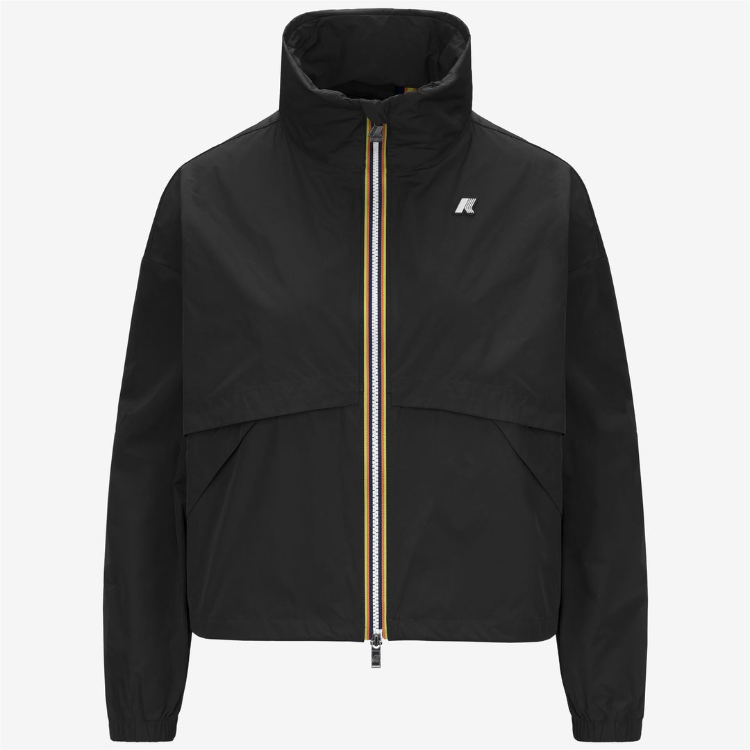 Aubette is a women's short jacket designed to celebrate the brand's sporty spirit thanks to the smooth, rubberized fabric and crop cut with oversized details such as maxi pockets and maxi front flaps. The jacket features a zip closure in K-Way signature colours, a high collar, elasticated cuffs and an adjustable drawstring at the waist.