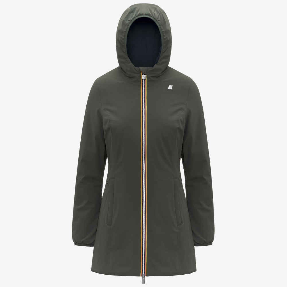 The Denise women’s three-quarter-length jacket reinterprets K-Way’s functional spirit with a feminine twist. The design combines a plain waterproof stretch polyester side with a printed windproof polyester reverse. Insulated with synthetic padding for a mid level of warmth perfect for in between seasons, the design features heat-taped seams for thermal insulation and superior comfort during outdoor activities.