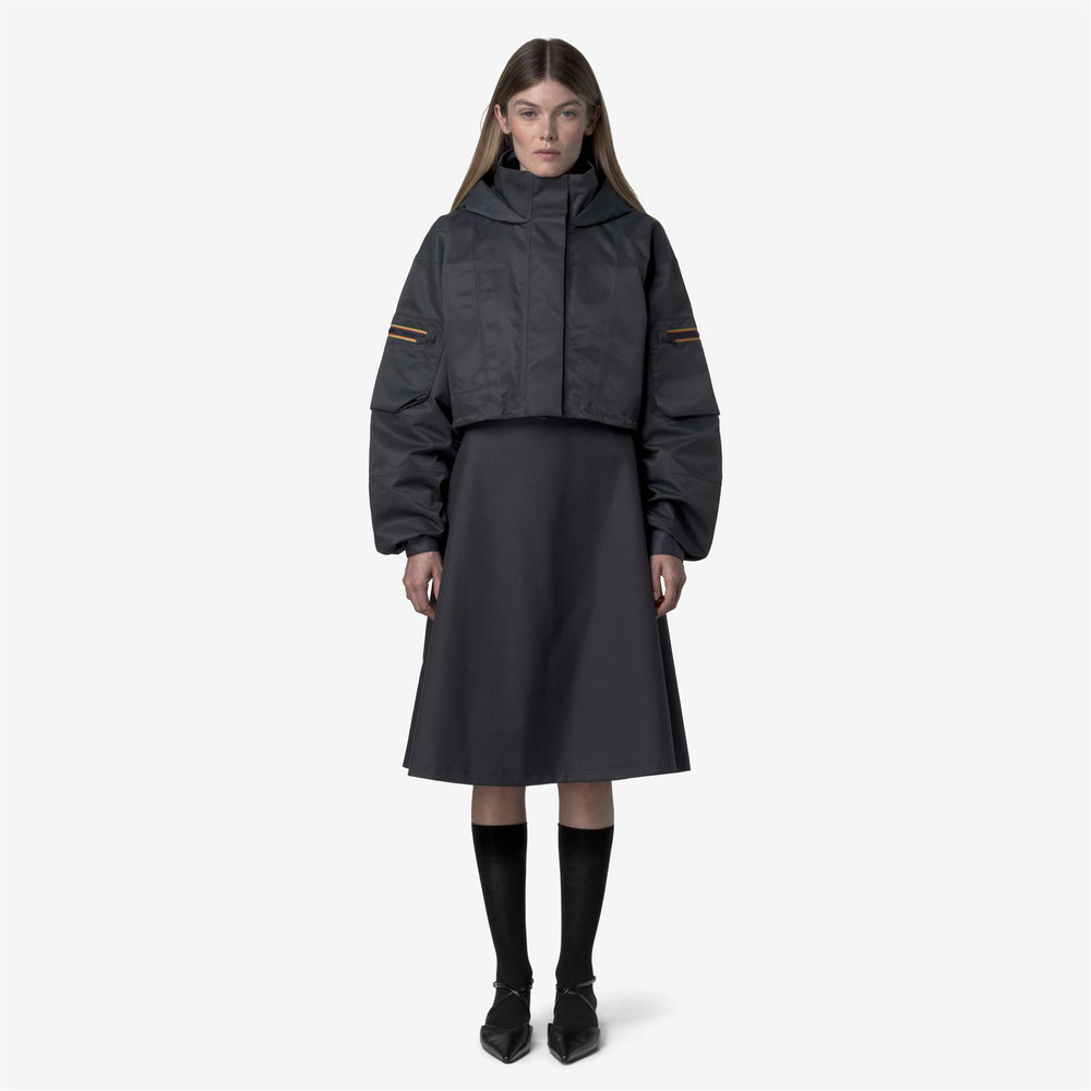 Jaxie is an ultra-cropped women’s jacket that reimagines the classic parka with bold proportions and a satin-finish texture. Designed for transitional seasons, it’s made from recycled water-resistant satin with an internal insulating membrane for added protection. The silhouette features an adjustable hood and hem, a zip closure with a press-stud storm flap, and a distinctive twist on K-Way®'s iconic ‘packable’ pocket, repositioned on the voluminous balloon sleeves with a visible zip in the brand’s signature colours.