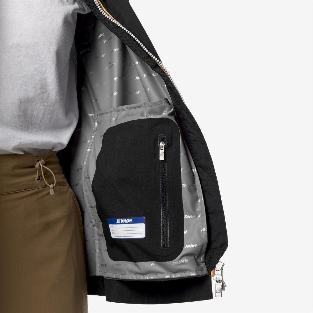 Marguerite is a women's medium-length jacket, perfect for transitional seasons. It's crafted from stretch technical fabric that allows for unrestricted movement while providing rain and wind protection, with water resistance up to 10000 mm. The interior is lined with an insulating membrane with all-over silver-tone K-Way lettering print. Functional details, such as zipped pockets, a wrap-around adjustable hood, and elasticated cuffs and hem ensure an easy, comfortable fit.