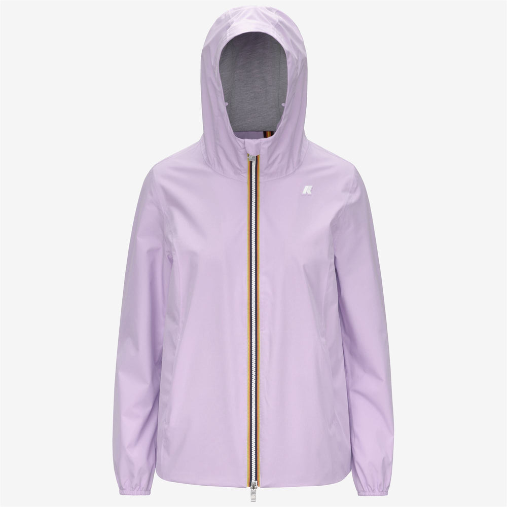 Marguerite is a women's short jacket offering a mid-season warmth grade. It boasts a casual, modern look, and is made from stretch polyester with a waterproof and windproof coating plus a soft grey melange cotton jersey lining. The inner heat-taped seams and the waistband decorated with the iconic multicoloured K-Way tape provide a distinctive signature touch.